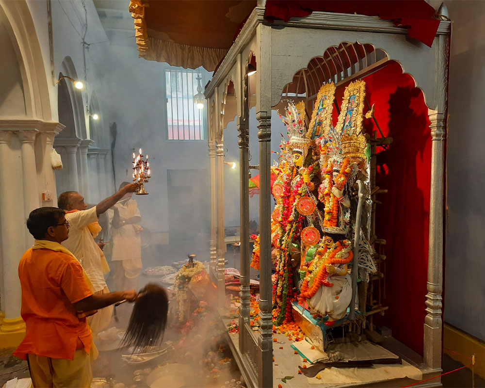 উত্তর কলকাতার বনেদি বাড়িগুলির পুজোর মধ্যে প্রায় সবকটিই যথেষ্ঠ প্রাচীন ও ঐশ্বর্যশালী। বৈভব ও ঐতিহ্যের দিক দিয়ে রীতিমতো একে অন্যকে ছাপিয়ে যাবার ক্ষমতা রাখে এরা। সে সুদিন গেছে, প্রায় সকলেরই সেই প্রাচুর্যের সূর্যও আজ অস্তমিত। কিন্তু তবু বনেদিয়ানা আর আন্তরিকতার মেলবন্ধনে সমস্ত রীতিনীতি মেনে আজও স্বমহিমায় টিকে রয়েছে পুজোগুলি। তেমনই একটি পুজো ছাতুবাবু-লাটুবাবুর বাড়ির পুজো। ২৪৭ বছরের পুরনো এই পুজোটি আজও তার ঐতিহ্যের সুনাম অক্ষুণ্ন রেখেছে। সে সময় ব্রিটিশরা একটু একটু করে ভারতীয় রাজনীতিতে প্রভাব বিস্তার করছে। বাংলার ব্যবসায়ীদের মধ্যে রামদুলাল দেব (সরকার) তখন বেশ পরিচিত নাম। তবে রামদুলাল ব্রিটিশদের সঙ্গে নয়, বরং মার্কিনিদের সঙ্গে ব্যবসা করেই যশোলাভ করেছিলেন। আমেরিকার স্বাধীনতালাভের পর এই ব্যবসা শুরু হয়। এখান থেকে মূলতঃ মশলা ও মসলিন রফতানির ব্যবসা ছিল রামদুলালের। বদলে আমেরিকা থেকে আসতো নানান পণ্য। সেই আমলে নাকি জর্জ ওয়াশিংটনও রামদুলাল দেবকে এই রফতানি সূত্রে যথেষ্ঠ সমীহ করতেন। ফলে রামদুলালের কোষাগার ফুলেফেঁপে উঠেছিল অচিরেই। বলা হয়, রামদুলাল দেব ছিলেন বাংলার প্রথম কোটিপতি। এই রামদুলাল দুর্গাপুজোর প্রচলন করলেন ১৭৭০ সালে, তাঁর বিডন স্ট্রিটের বাড়িতে। তিনি প্রয়াত হবার পর উত্তরাধিকার সূত্রে পুজোর দায়িত্ব এসে পড়ে তাঁর দুই পুত্র আশুতোষ নাথ দেব বা ছাতুবাবু, ও প্রমথনাথ দেব বা লাটুবাবুর ওপর। কলকাতার বাবু কালচারের দুই দিকপাল ছিলেন এই দুই ভাই। বুলবুলির লড়াই ও নানান অদ্ভুত শখের জন্য কলকাতার বাবু সমাজে এঁরা বিখ্যাত হয়ে উঠেছিলেন। এঁদের সময়েই এই বাড়ির দুর্গাপুজো খ্যাতি লাভ করে। এঁদের নামে পুজোর নাম হয়ে যায় ছাতুবাবু-লাটুবাবুর পুজো।
