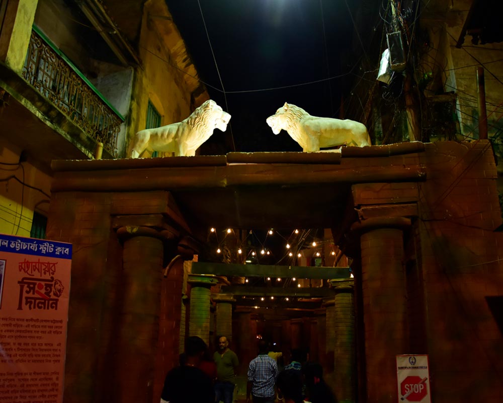 "এলাকার মানুষকে সংঘবদ্ধ করতে ১৯৮০ সালে স্থাপিত হয় এই ক্লাব। মৃৎশিল্পী পাঁচু পালের হাতে গড়া দুর্গাপ্রতিমা নিয়ে ১৯৮৬ সালে এক ঘরোয়া সাবেকি পুজোর মাধ্যমে শুরু হয় এই দুর্গোৎসব। এরপর ১৯৯৯ সাল পর্যন্ত প্রখ্যাত ভাস্কর শ্রী প্রফুল্ল পালের মাটির অলঙ্করণে সজ্জিত দুর্গামূর্তি, নহবত সহযোগে দেবীর অর্চনা, বস্ত্র বিতরণ, ভোগ বিতরণ, শঙ্খধ্বনি প্রতিযোগিতা ও ধুনুচি নাচের মাধ্যমে মাতৃ আরাধনা সেই সময়ে অনেক সংগঠনের কাছে দৃষ্টান্ত স্থাপন করেছিল। দীর্ঘদিন সাবেকি পুজোর আয়োজন করার পর ২০০৫ সাল, অর্থাৎ এই পুজোর রজতজয়ন্তী বর্ষে শুরু হয় থিমপুজো। তবে প্রবল আর্থিক সমস্যা হওয়ায় কোনও পেশাদার শিল্পী ছাড়াই নিজেদের প্রচেষ্টায় মণ্ডপের পরিকল্পনা ও রূপদান শুরু হয়। এখনও সেভাবেই আয়োজিত হয় এই পুজো। ২০১০ থেকে ’১৩ সাল পর্যন্ত ‘সোনিক দুর্গা প্রতিমা’ ও আরও ৭৫টি শারদ সম্মানে ভূষিত হয়েছে এই পুজো। ২০১৪ সালে সেরা দুর্গাপ্রতিমার পুরস্কার হিসেবে ‘এশিয়ান পেন্টস্ শারদ সম্মান’ অর্জন করেছে এই পুজো। এছাড়াও ২০১৪-’১৬ সালে আরও ৩০টি পুরস্কারে সম্মানিত হয়েছে নেপাল ভট্টাচার্য স্ট্রীট ক্লাবের পুজো।"