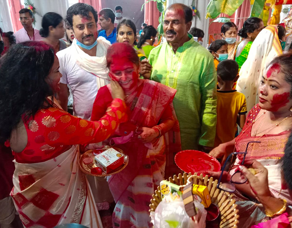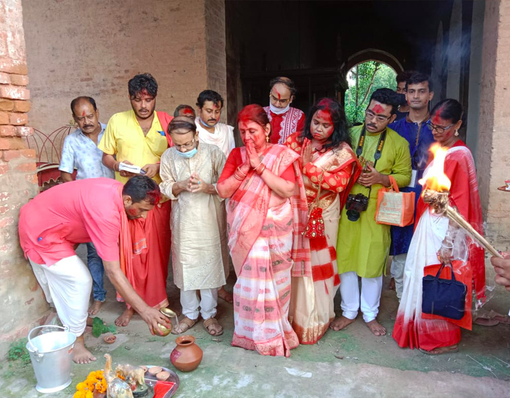 বঙ্গে দুর্গাপুজোকে সার্বজনীন করেছে মহারাজা কৃষ্ণচন্দ্রর কৃষ্ণনগর রাজবাড়ির পুজো। আজ থেকে ৩১১ বছর আগে মহারাজ কৃষ্ণচন্দ্র জন্মগ্রহণ করেন। তার আগেই নদীয়া রাজপরিবারে রাজরাজেশ্বরীর পুজোর শুরু হয়েছে। সেক্ষেত্রে রাজবাড়ির রাজরাজেশ্বরীর পুজো চারশো বছরের বেশি সময় ধরে হচ্ছে। মহারাজ কৃষ্ণচন্দ্রই প্রথম সর্বসাধারণের মধ্যে দুর্গোৎসবের প্রচলন করেন, যা পরবর্তীকালে সর্বজনীন পরিচিতি পায়। রীতি অনুযায়ী মহালয়ার পরে প্রতিপদের দিন থেকে রাজরাজেশ্বরীর হোম জ্বালানো হয়। কয়েক কুইন্টাল ঘি, বেলকাঠ পাতা, জল, মধু, ঘি, কলার মতো উপাচারের প্রয়োজন হয়। এই হোমের আগুন জ্বলে টানা নবমী পর্যন্ত। পরে হোমের আগুন নেভানো হয়। রাজরাজেশ্বরী পাটে আসীন হন বোধনের সময়ে। তাঁকে বেহারাদের কাঁধে চড়িয়ে রাজবাড়ির পঙ্খ অলঙ্কৃত দুর্গাদালানে অধিষ্ঠিত করা হয়।