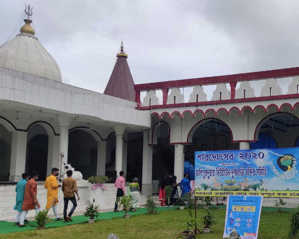 "১৯৪৭ সালে, অর্থাৎ আজ থেকে ৭৩ বছর আগে এই পুজো শুরু হয় প্রয়াত বিরাজমোহন ধর, শ্রীশ ব্যানার্জি ও তৎকালীন সরকারি আধিকারিকদের উদ্যোগে। সেকালের মহকুমাশাসক ম্যাক উইলিয়াম সাহেব, প্রাক্তন মুখ্যমন্ত্রী সিদ্ধার্থশঙ্কর রায় সহ আরও অনেক বিশিষ্ট ব্যক্তিবর্গ বিভিন্ন সময়ে এসেছেন এবং সমৃদ্ধ করেছেন এই পুজোর ইতিহাসকে। নরনারায়ণ সেবা, বস্ত্রদান, অন্যান্য সামাজিক কর্মসূচি ও তৎসহ বিশিষ্ট পণ্ডিত শ্যাম ভট্টাচার্যের মন্ত্রপাঠ এই পুজোকে এক অন্য মাত্রা দিয়েছে। গঠনশৈলী ও প্রশস্ত নাটমন্দিরের জন্য বর্তমানে এই দুর্গাবাড়ি মন্দির এক বিশেষ আকর্ষণ হয়ে উঠেছে স্থানীয় বাসিন্দাদের কাছে। আলিপুরদুয়ার জেলার প্রাচীনতম এই পুজো বিগত কয়েকবছরের সেরা পুজোর স্বীকৃতি পেয়েছে। বর্তমানে এই পুজোর মুখ্য উদ্যোক্তা— আশিষচন্দ্র দত্ত (সভাপতি), সঞ্জিত ধর ও স্বরূপ কর (সম্পাদক), দিগ্বিজয় পাল (কোষাধ্যক্ষ)।"